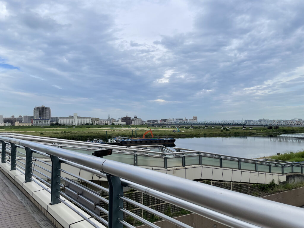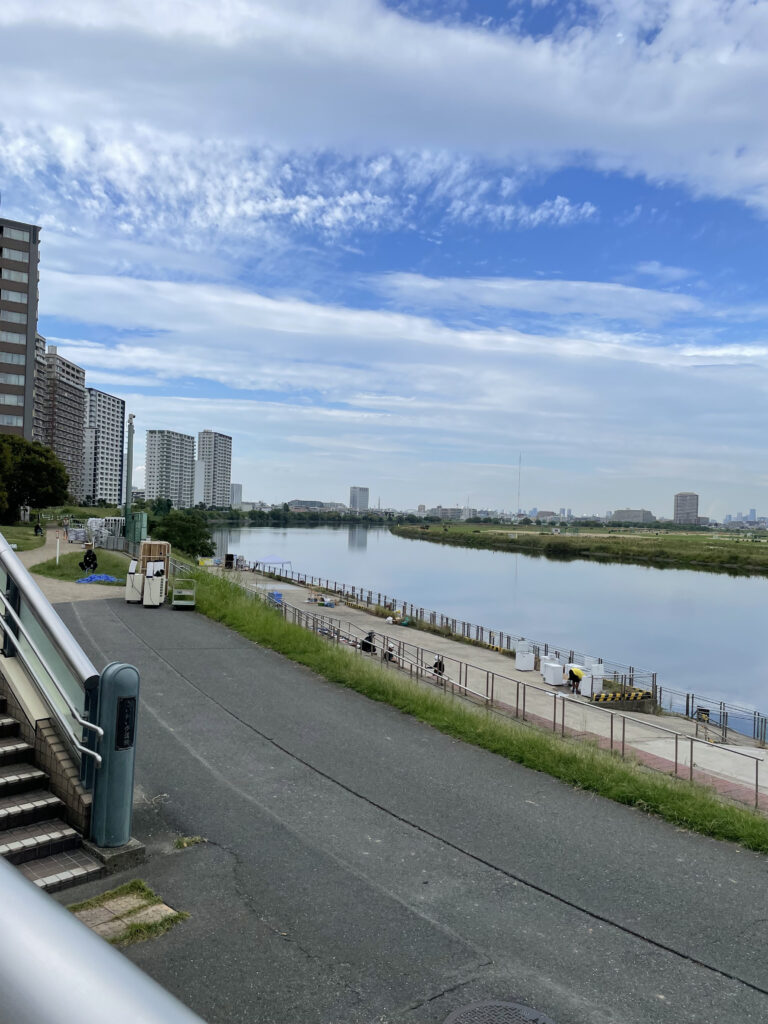 そのすぐ近く、智が「へたくそーーーーー!!!!!」って叫んだ多摩川沿いですね。ここも記憶に残るシーンですよね。(ほかにもたびたび登場してた、仁菜が空の箱歌ってたり)そばで工事していたんで聖地感は若干薄れましたが、広大な多摩川と川崎の街並みの対比が綺麗でした。川崎は駅前は都会なんだけど、少し離れると閑静な住宅街といった印象で、住んだら快適だろうなと歩きながら感じました。