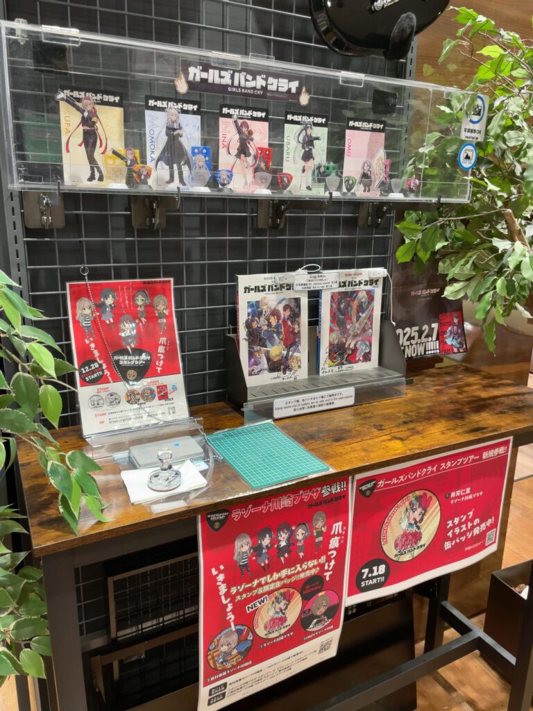 ラゾーナの中には作中で訪れた島村楽器もあり、訪問。ここにはフィギュアと、スタンプ台が設置させており、拝見させていただきました。綺麗に並べられた楽器を見ていると、ギターがやりたくなってきます。フリーダム、今日から私はじゆう~!!